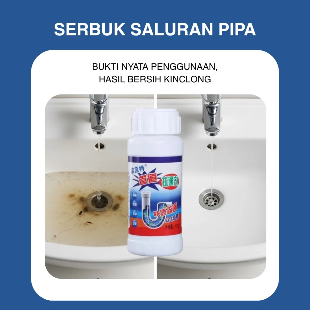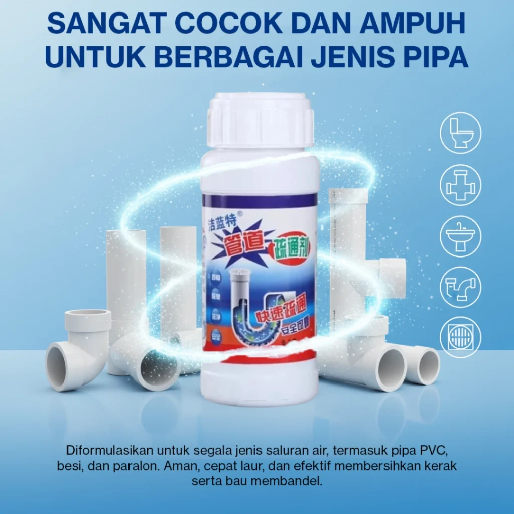 HANYA DENGAN SEKALI TUANG! Segala macam kotoran, sisa makanan, rambut, dan lain-lain yang mengendap di saluran air akan BERSIH SEKETIKA